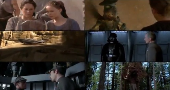 It’s rare, but sometimes, in my stumbles around the Internet, I encounter a thing that has never occurred to me before and it makes my brain explode. Today, that thing was the YouTube video ALL 6 STAR WARS which, since I know you’re wondering, is exactly what it sounds like — the cacophonous blur of all six Star Wars films playing in a single YouTube video. While it’s not exactly new, I feel pretty strongly that it’s a thing you should know exists. By all means, take a look for yourself and settle once and for all the question, “What would it feel like to watch Star Wars while having several massive strokes?”