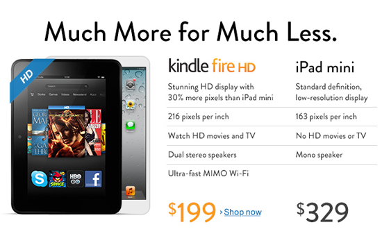 Amazon Throws Down the Gauntlet, Compares Kindle Fire to iPad Mini on Homepage