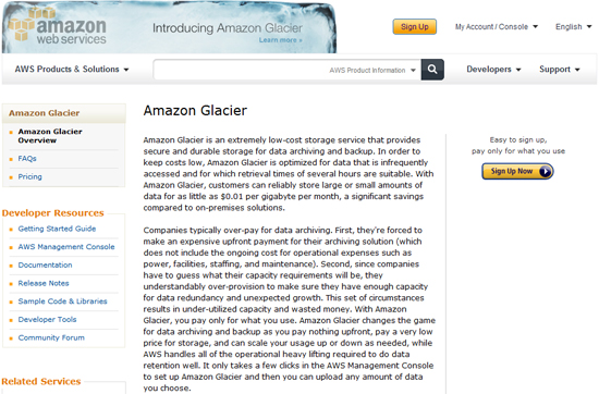 Amazon Launches Amazon Glacier for Archiving and Data Backup