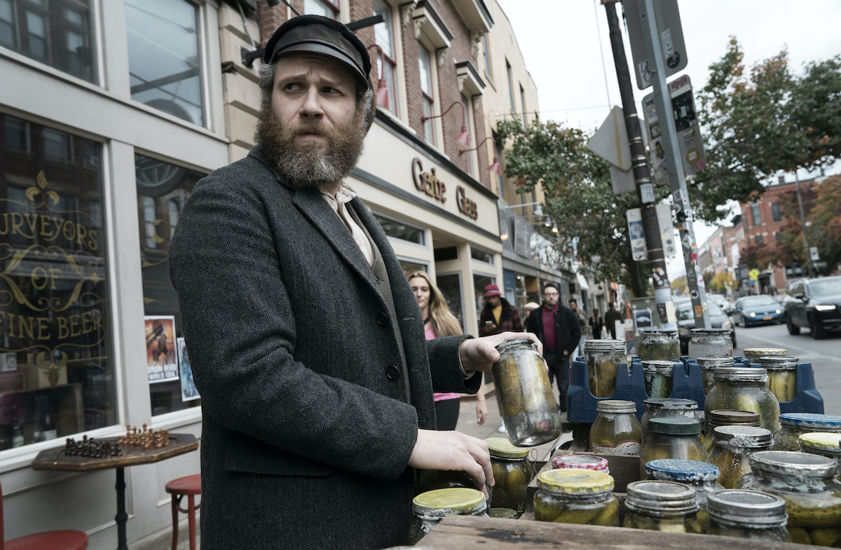 Both versions tell the story of Herschel, a Jewish immigrant living in Brooklyn in the early 20th Century. Thanks to an accident in the pickle factory where he works killing rats, Herschel ends up preserved in brine for 100 years. When he’s discovered, his only living family is his great-great-grandson Ben (called Simon in the short story, which is very loosely inspired by Rich’s own family–minus the magical realism, I assume), who is exactly the same age as Herschel, meaning that in the film adaptation, Rogen plays both roles.