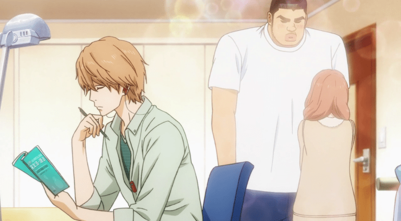 However, unlike a lot of young, single characters in anime/manga who are more oblivious or immature than asexual (i.e., it’s implied they’ll eventually grow out of it), Suna is by far the most observant member of the cast, empathetic and understanding and able to spot a twitterpated teen from a mile away. Both Takeo and Yamato frequently come to him for a listening ear or relationship advice, and he’s quick to calm them down or point out any gaps in their flustered logic.