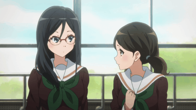 Its overarching aesthetics appropriately integrate constant expressive hand motion and facial expressions in a way that helps to give life to the concert and practice scenes. It’s kind of nice to see music kids be identified casually on screen by their connection to their instruments, further assisted by the very things they play, which sometimes contextually helps to reveal something about their personality and mental state. This is seen from Kumiko’s noncommittal but preordained interaction with the euphonium to newbie Hazuki’s similarly fated but brash crossing with the tuba.