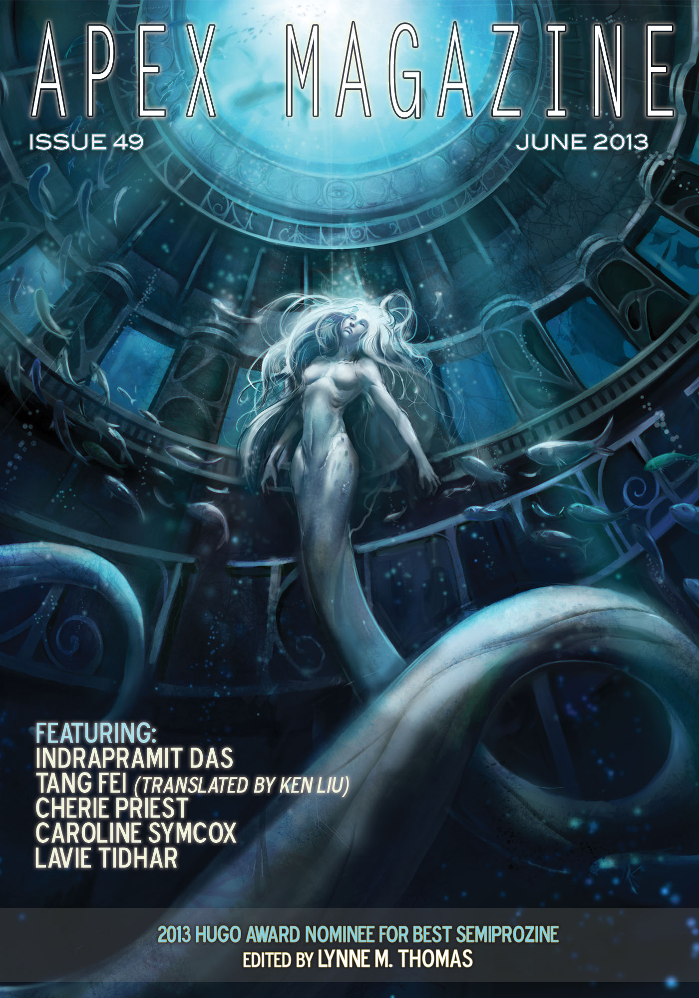 This story is from issue 49 (June, 2013). The issue also features fiction by Tang Fei (“Call Girl”, translated by Ken Liu), Lavie Tidhar (“Titanic!”), and Cherie Priest (“Reluctance”), nonfiction by Caroline Symcox (“A Believer in Fandom: Can Geek and Christian Mix?”), and an interview with Cherie Priest.