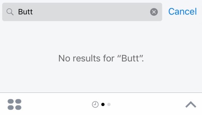 iMessage in iOS 10 is a weird bizarro land of new features and confusing menus, but the one that makes the most sense is the inclusion of native GIF search. That doesn’t come without its own problems, however, and Apple took measures to keep things from getting NSFW by disabling certain naughty words from the search. One they didn’t disable, however, was “butt,” and the Bing-generated results made them regret that decision in short order.