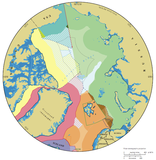 Under international law, nobody can own the North Pole or the portion of ocean immediately surrounding it, but that doesn’t keep the carving up of the jurisdiction and boundaries of the broader Arctic from being a messy affair: Durham University counts no fewer than twenty different territorial classifications governing the Arctic.