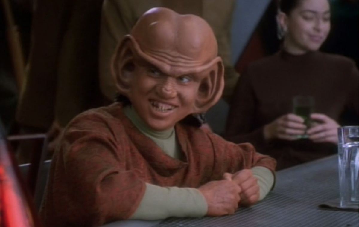 As many of you know, I am new to Star Trek through Discovery and Deep Space Nine. DS9 has been such a delight to watch, and one of my favorite characters is Nog, and by extension, his Ferengi family of father Rom and uncle Quark. In the series, Nog is the first Ferengi to join Star Fleet because he doesn’t want to waste his life the traditional Ferengi way of constantly trying to gain capital. He wants to live his life with purpose and despite his uncle’s initial misgivings, the family comes together to support Nog. His friendship with Jake Sisko and his loyalty to his father are so touching. The emotions that Eisenberg was able to portray with all that makeup on his face speaks to his incredible acting ability.