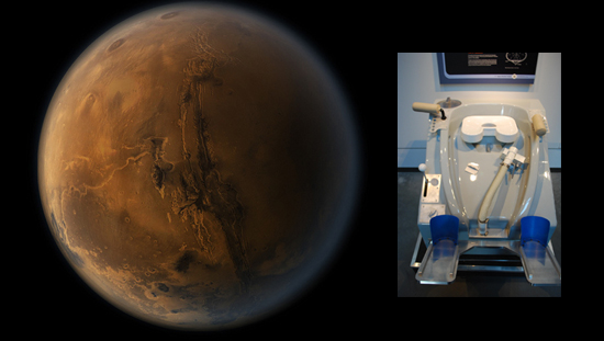 Even as the Curiosity rover roves across the rusty-hued surface of Mars collecting samples, multimillionaire “space tourist” Dennis Tito announced earlier this week that he plans to send his own mission to the Red Planet in five years. Except Tito’s intent on sending humans, not robots. That’s a formidable trip to make, fraught with the perils of time, atrophy, boredom, and high-energy radiation from the depths of space! To protect against such cosmic rays, Tito’s team says they will use the astronauts’s own fecal matter as part of their wall shielding.