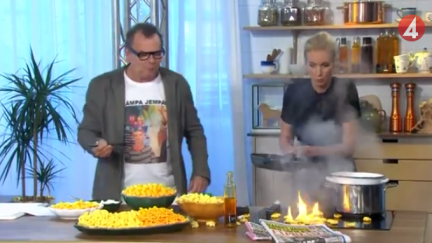 Swedish TV Host Starts Fire Live on Air While Frying Cheese Doodles for Some Reason