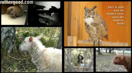 The Internet Animal Orchestra, a brilliant video compilation painstakingly assembled by RatherGood, screaming monkeys, rabbits, snapping shrimp, a dog that screams ‘elm,’ a woodpecker, a cow, turtles and tortoises, a bald eagle, an echolocating bat, a boxer dog, an elephant, a husky that says ‘I love you,’ a Sumatran tiger cub, a sheep, a goat, a rooster, a humpback whale and her calf, a piano-playing pig, several owls and miscellaneous dogs join voices and noisy appendages to bring you one glorious song.