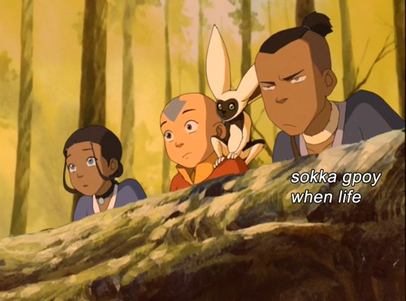Or maybe he’s just a little bitter about her making fun of his ears in that “fake” fight they had. Respect, Katara. I am an older sister myself. You have to keep the whelps in line. [Edit: It has been pointed out that Katara is in fact Sokka’s younger sister. I was projecting.]