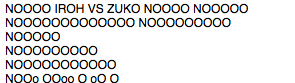 Then! Deus ex Iroh! He shows up and gives Katara enough time to run off with an unconscious Aang (or maybe dead? If he dies in the Avatar state, there are no more Avatars, but we have a whole third season, so that’s not gonna happen). To do that, he has to fight Azula and Zuko. I’ll let my notes speak for themselves:
