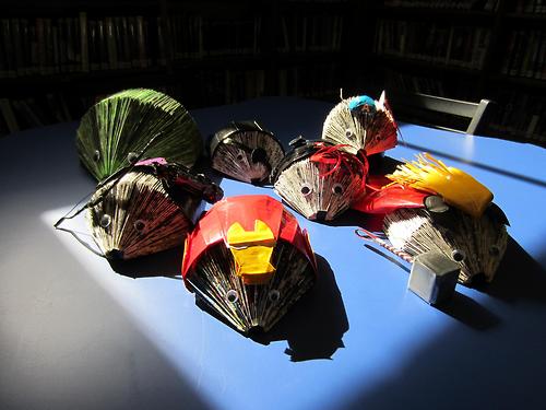 Robin Brenner, YA librarian and former Eisner Award judge, did something special for her library’s teen anime/manga club lock-in. She took a bunch of old graphic novels that had been replaced after becoming too dog-eared and spine-broken to keep on the shelves (that would otherwise have been thrown away) and turned them into Book Hedgehogs. Then she turned those book hedgehogs into the Avengers, Nick Fury, and Agent Coulson. Prepare for cute, everyone.