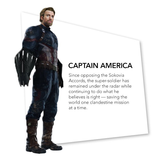CBR points out that a new Toys”R”Us landing page for Infinity War toys features a collection of new character bios. The bios appear to delve into both what the characters have been up to since Civil War and some of the challenges they’re facing—and in Thanos’ case, providing some motivation behind his Gauntlet-quest. There are six bios: Captain America, Thanos, Thor, Hulk, Iron Spider, and Black Widow (in heels). Let’s dive in.