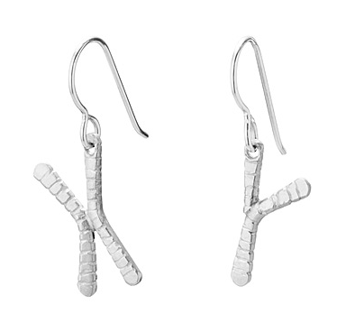 Uncommon Goods has these dainty chromosome earrings, sold individually.