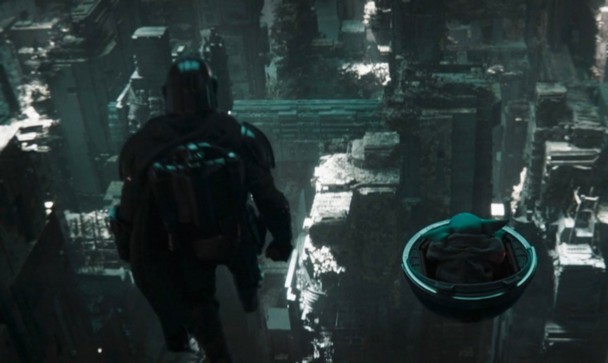 There is a lot of walking around in this episode. Once the two go into the mines together, they’re floating from layer to layer and just exploring what used to be there for Mandalore and its people. It’s great because Grogu is in his little egg, floating around, and he will suddenly just make a face as he’s trying to figure out what is happening around him.