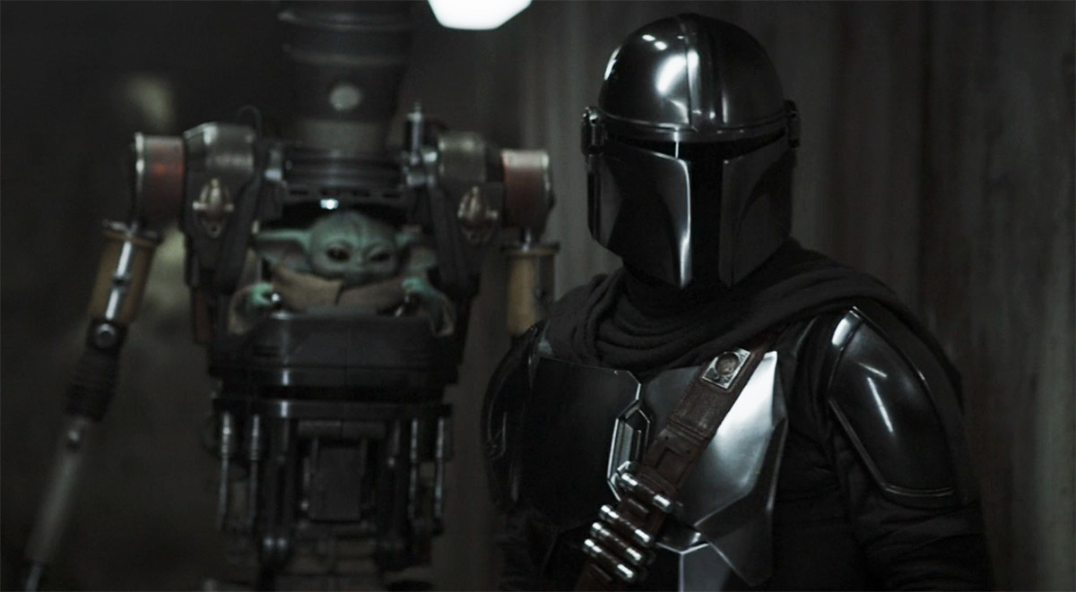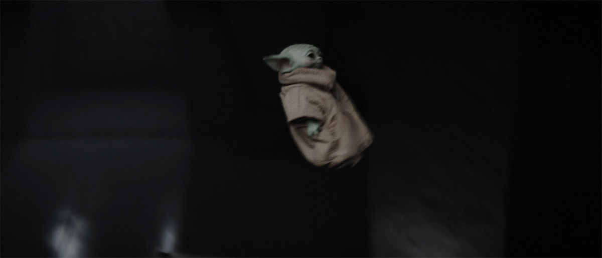 Din is trying to be stealthy on the base, running around and hiding in the shadows, and then Grogu comes lumbering behind him in plain sight—until Din tells him to hide, which Grogu does and then just doesn’t move from that spot.