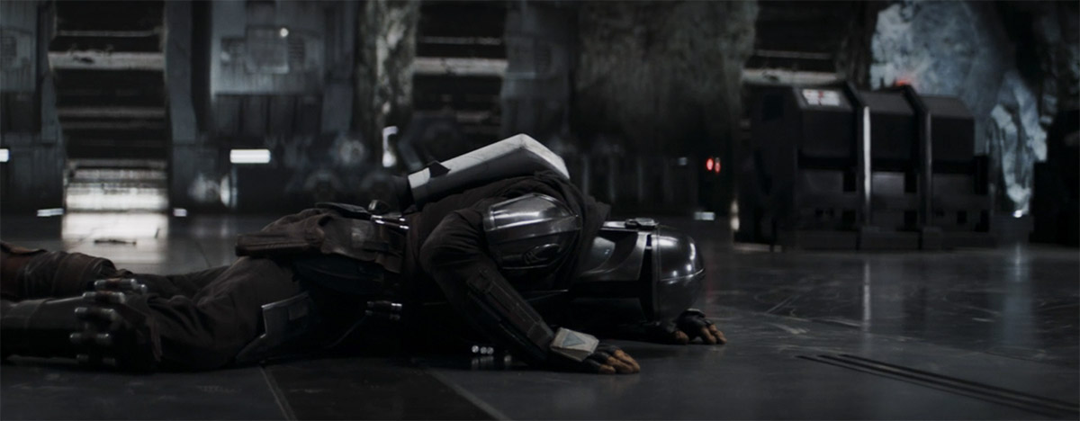 But just when he’s trapped, afraid to move, and seemingly at his end, Din Djarin breaks free from his fight with Moff Gideon with the help of Bo-Katan and busts through the door to save his son.