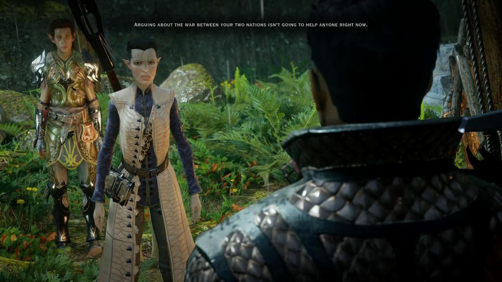 I call the war council together. Apparently we’ve been doing pretty well. Celene will send us any and all support, and undoing Corypheus’ plans at Adamant has led to a significant blow in his ranks. We’re neck and neck for support now, and Corypheus’ followers have been shaken by our victories and resolve. So, a day off then? Not so fast: apparently Corypheus is off to the Arbor Wilds with his followers for some blasted reason. I can feel my next mission to follow him brewing. One day off, guys? Just one? Leliana believes Corypheus is searching for more Elven ruins but for what reason we still don’t know. Urgh, Leliana! Make your spies be more spy like and retrieve some actual information for me? There’s a dear. A new voice breaks through my building annoyance.