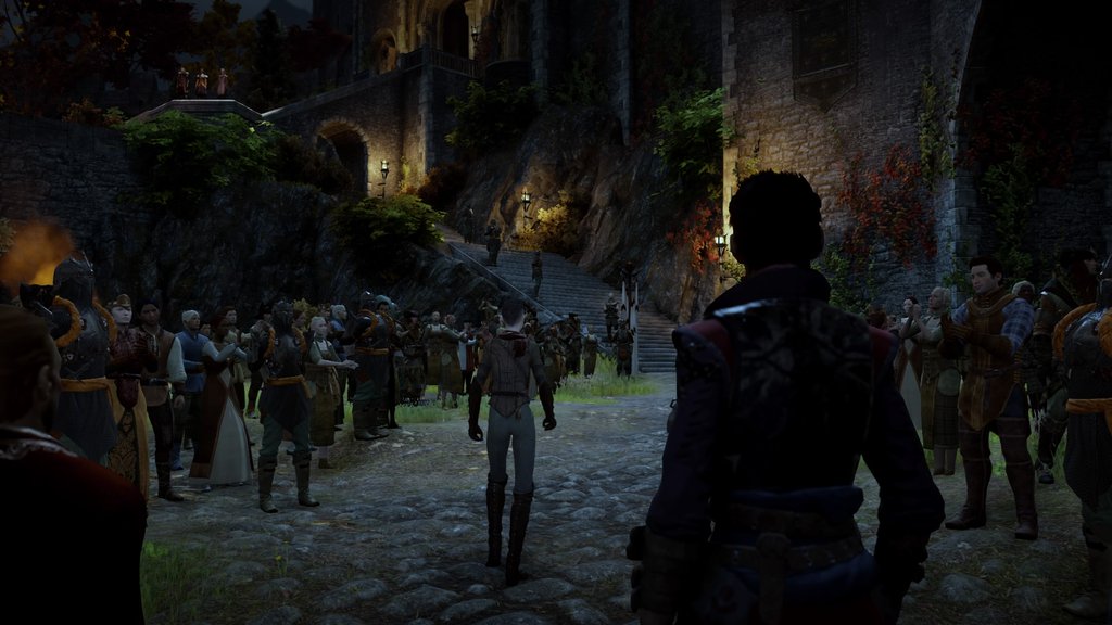 Unfortunately, the welcome wagon is out in full force. I’d like nothing more than to jump into bed, but these people, the Inquisition’s supporters, are yelling and screaming and cheering about our victory. I might have shed a tear if I weren’t constantly reminded of how lazy they all were. Why weren’t you lot out there helping me fight Corypheus? What were you even doing here? Urgh, whatever. I soak up the worship for a moment. I deserve it. Truly, I do.