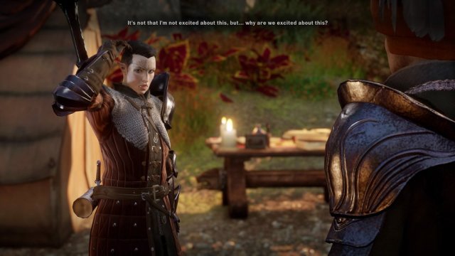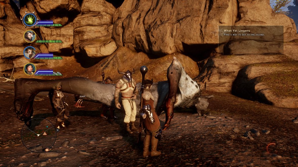 Kenric tells me we’ll be able to find loot and equipment with the body. Alright, colour me mildly interested, but why wouldn’t he have led with that particular bit of intel first? I’d have been excited from the beginning! Kenric tells me all the artifacts my Scouts have managed to find so far point to an island in the South. He asks me to go there and see if I can find anything on Ameridan, but not before treating me like a total idiot and informing this oh-so-lowly Dalish that cloth and linen will have rotted away after 800 years and not to look for them. No fucking shit, you arse.