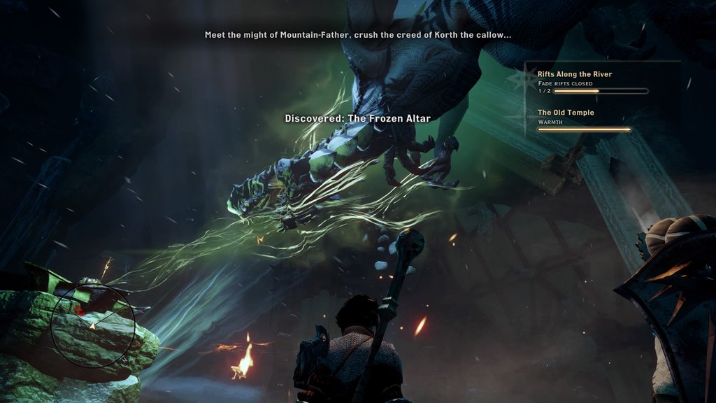 The dragon has created its very own island of ice on the water and directly over the fisherman’s house. Hahahaha. I’d feel sadder about the fisherman’s likely death if he hadn’t been less shitty about his bloody boat. Ice is difficult terrain to fight on, but I’m the motherfucking Inquisitor. I make do.