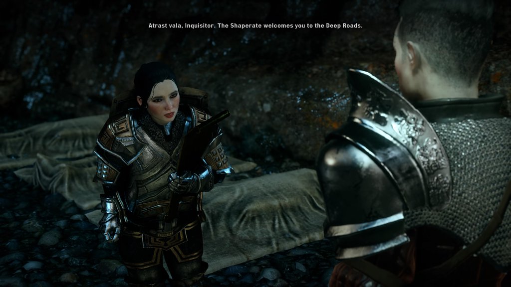Shaper Valta introduces me to the Commander of the Legion of the Dead, Lieutenant Renn. I tell him the Darkspawn aren’t going to let up. We need to find the source of those earthquakes and fast, or just seal off Orzammar for good and relocate the Dwarves.