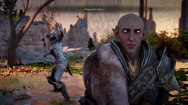We step out of the Eluvian into a forested area full of ruins. My mark explodes again, but this time I can’t control what it does and who it hurts, and I end up throwing Blackwall off his feet. He grimaces, dusts himself off and stands back up. Oops. I swear I didn’t do that on purpose. Honest.