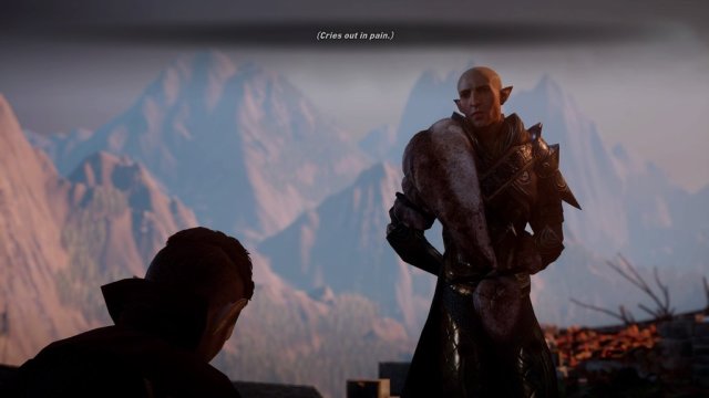 I collapse under the mark’s power, from the pain of it searing through my hand once again. Solas slowly approaches me. Oh, this is it, isn’t it? Now he’s told me what he’s planning, I’m dead. He tells me my death would only cause more bloodshed and alarm, or he wouldn’t bother to save me, to help me. What? He tells me he doesn’t expect my thanks. You’ve got that right, you bastard. He flashes his eyes again and I suddenly can’t feel my arm. Uh. What the hell did you just do to me, Solas? He turns and walks away through the Eluvian without another word, leaving me alone.