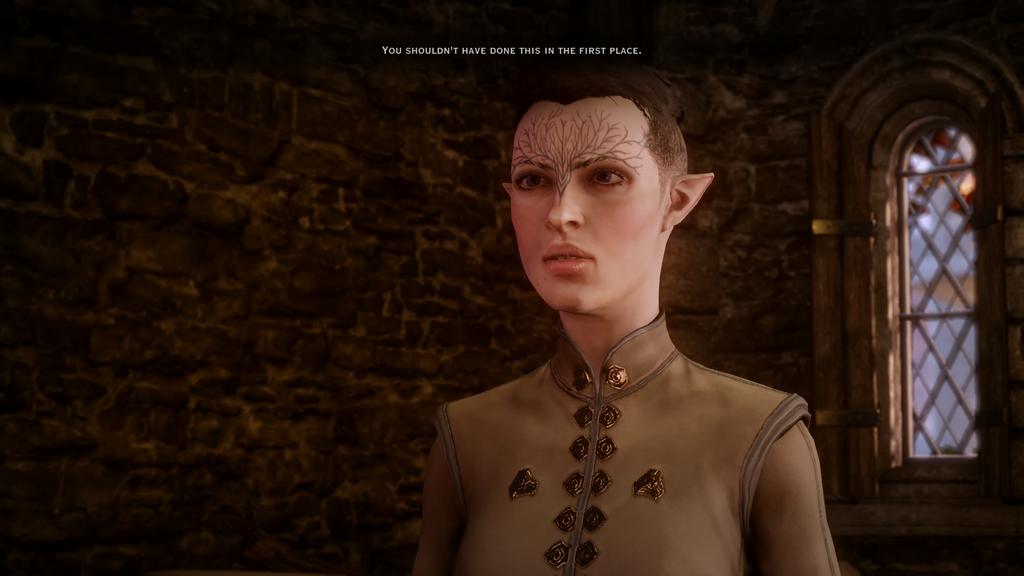 Another is brought forward: Knight Captain Denam. Cullen rightly points out that even though the envy demon might have tricked him, he almost destroyed the Templars by blindly following his superior’s orders. Many Knights died as a result. Denam yells that he was only following orders. That any, Cullen included, would have done the same. Honestly, this is more of a Templar issue than anything, so I offer the Templars watching the opportunity to judge him. Denam knows the punishment will be death. I don’t really care; he deserves it.