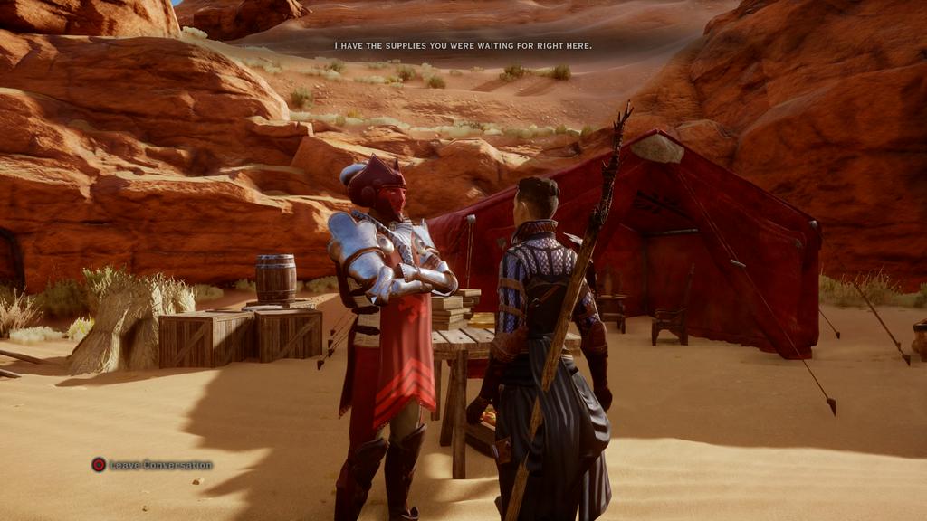 Knight Captain Rylen is my point of contact here, and after a week has the place pretty well set up. Scouts are out actually doing their jobs and Rylen has reports ranging from issues with the water supply to the widespread bandit problem. It only we could figure out what’s creating that bloody awful sulfurous gas that surrounds us. If that wasn’t bad news enough, there’s also Darkspawn to deal with. Seriously guys, we’re trying to deal with Corypheus here. You know? Big ol’ bent on destroying us all bad guy? The Venatori had been executing tunnels by order of Servis, and somehow unearthed the Darkspawn, so now it’s apparently my job to track the source down and annihilate it. Joy!