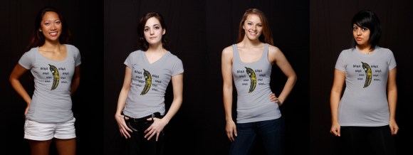 This is Batman as a Banana. Not to be confused with Bane as a banana. For the next week, Gimmick Tees is selling this design by artist Walmazan for $15 (with free shipping!). And guess what? It’s available in not one, not two, not three, but FOUR women’s styles. Check them out after the jump!