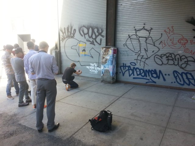 Get excited, fellow art geeks! Banksy is in New York for the month of October, and he’s attempting to host an entire art show on the streets of the city. He started yesterday, and as soon as we heard about today’s piece we headed over to catch it before it’s painted over or tagged by other graffiti artists.