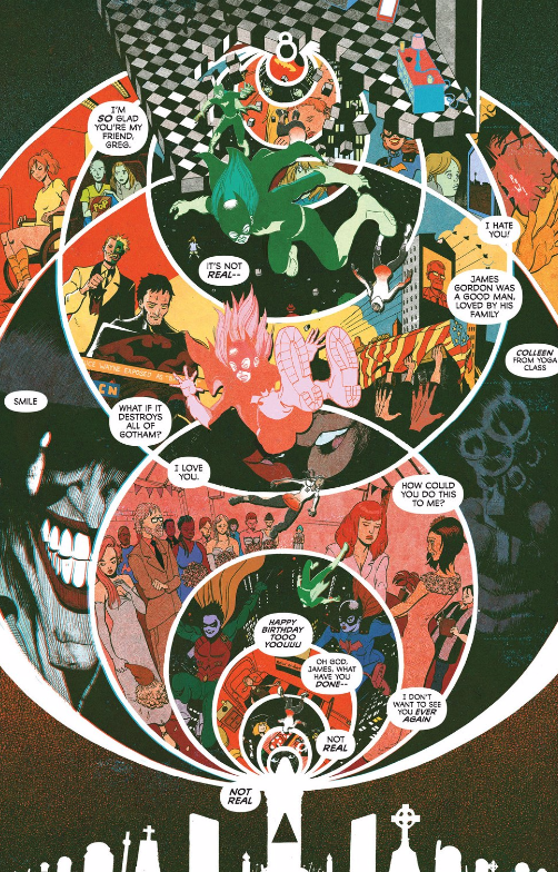 In Batgirl #49, Barbara and Frankie face off against “the Fugue,” who has implanted fake, nightmarish memories into Babs’ brain. In a full-page panel that features Brian Bolland’s Joker and gun, it’s implied that the events of The Killing Joke could be false memories instilled in Barbara by Fugue.