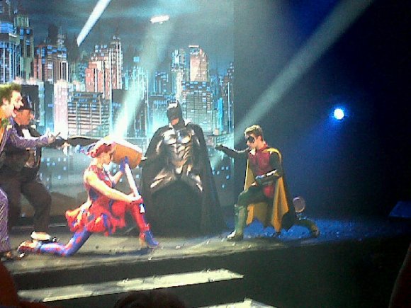 Okay, let’s take into account that this is arena theater as well as a show geared towards kids and families. Which, as we all know, means it’s really for kids, meant to hold their attention while their parents can sit back and also enjoy the show. That excuses any silly over-the-top theatrics. And as /film points out, maybe it’s okay to have a sillier Batman story being told while Christopher Nolan does such an excellent job with the dark, serious Batman story on film. Because as we’ve learned, silly can also be very successful.