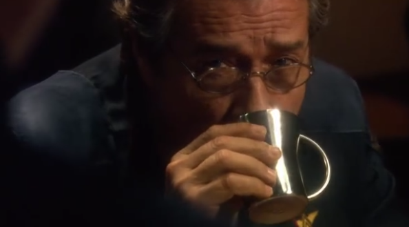 The jig well and truly up, Gaeta plays his hand and reveals THIS IS A MUTINY, FRAKKERRRRS! The mutinous Marines get a bit trigger happy and Jaffe ends up dying, which sends Adama from mere nail-spitting anger to apopleptic rage with a side of “Gaeta, I will tear your spine out through your mouth.” Gaeta says that he’s removing Adama from command and arresting him for treason, since he’s betrayed his oath to humanity by letting his affection for a Cylon (meaning Tigh) cloud his judgement.
