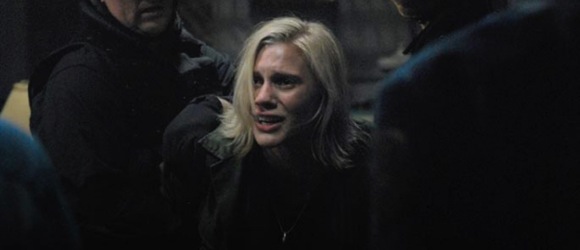 Tigh and Helo bust in along with a group of marines, who wrestle a screaming Starbuck to the ground. Even Helo, who’s always been on her side, looks at her like she’s crazy. As she’s being dragged from the room to the brig she yells that Roslin’s going to have to kill her because she won’t stop trying to get them to Earth.