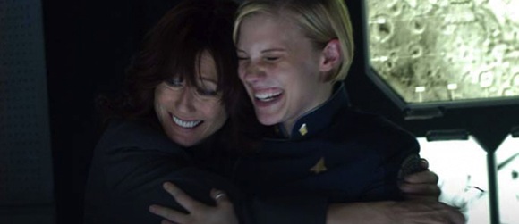 The night before the attack Lee and Adama have some father-son bonding time; Adama gives Lee a good luck heirloom and says that everyone else may think Starbuck would do better than him, but he doesn’t. I thought Lee’s insecurity issues would get old, but they haven’t. Yet.