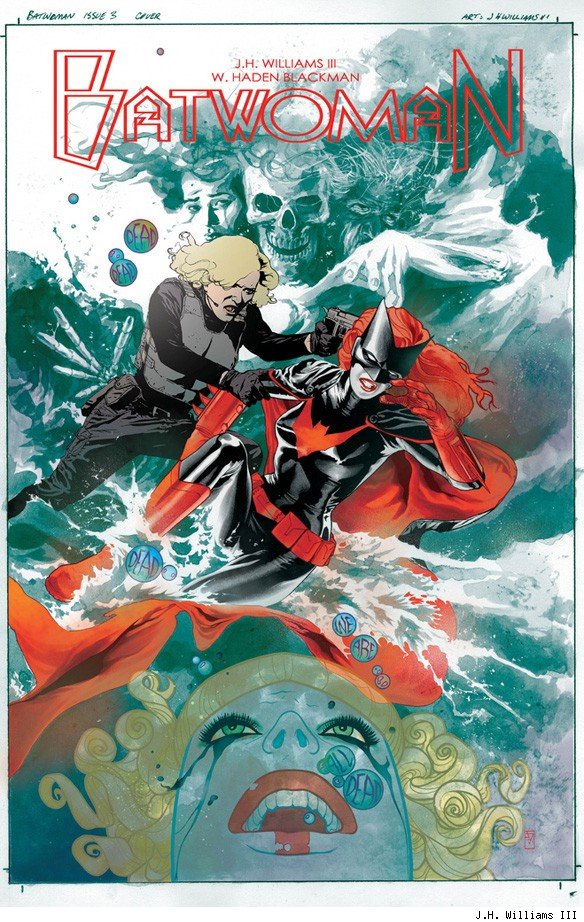 J.H. Williams III, the artist and co-writer behind an Batwoman, offered a sneak peak at the cover to Batwoman #3 in exchange for the title’s unexpected delay with no announcement of an eventual release date. No explanation for the delay has been forthcoming from DC, and Williams could offer no information on that score, either, saying only : “This was not our choice, and as to why, I’m not at liberty to really discuss.”