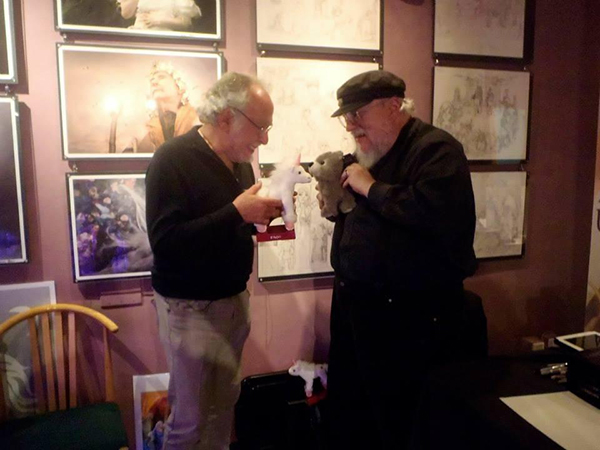 THEY MADE STUFFED ANIMALS FROM THEIR STORIES KISS. Ok, maybe there wasn’t actual unicorn to direwolf lip contact here but it’s damn close. Thank you for being adorable, Peter S. Beagle and George R.R. Martin.