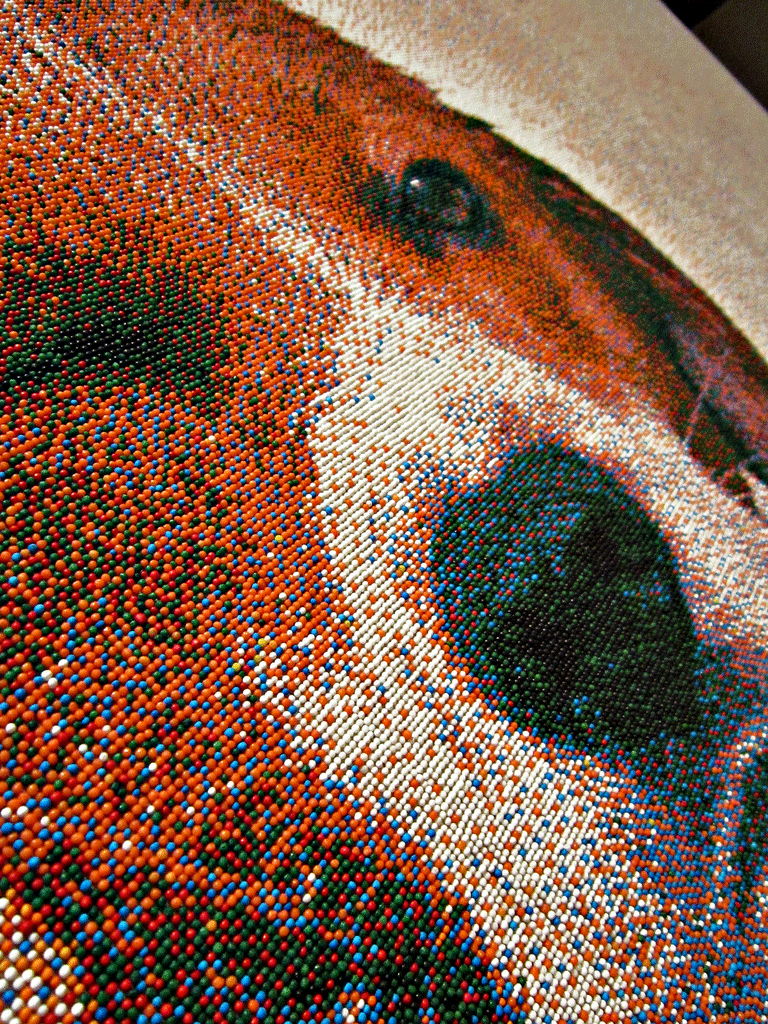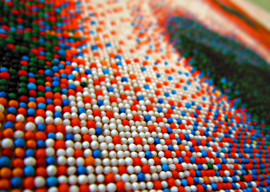 As observers of various screens, the concept of tiny colored dots coming together to form a solid image is nothing new. However, the best way to illustrate that point is to follow in the footsteps of Joel Brochu who created a portrait of a beagle taking a bath using 221,184 nonpareils sprinkles. According to him, when the four foot-wide image is viewed from 16 feet away, it looks exactly like a large photograph. And yes, each sprinkle was placed by hand with the whole image taking him about eight months to complete.