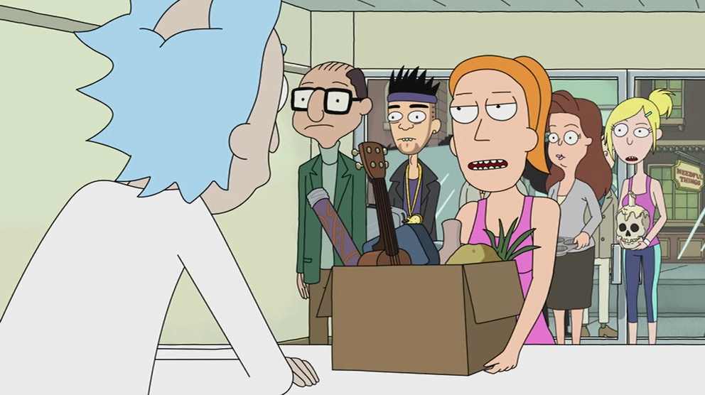 Something Ricked This Way Comes: Summer gets a job working for the devil at an ironic-cursed-items shop, and Rick immediately decides to screw with the guy by setting up a curse-lifting rival store; Jerry gets flown to Pluto as an advocate for its status as a planet.