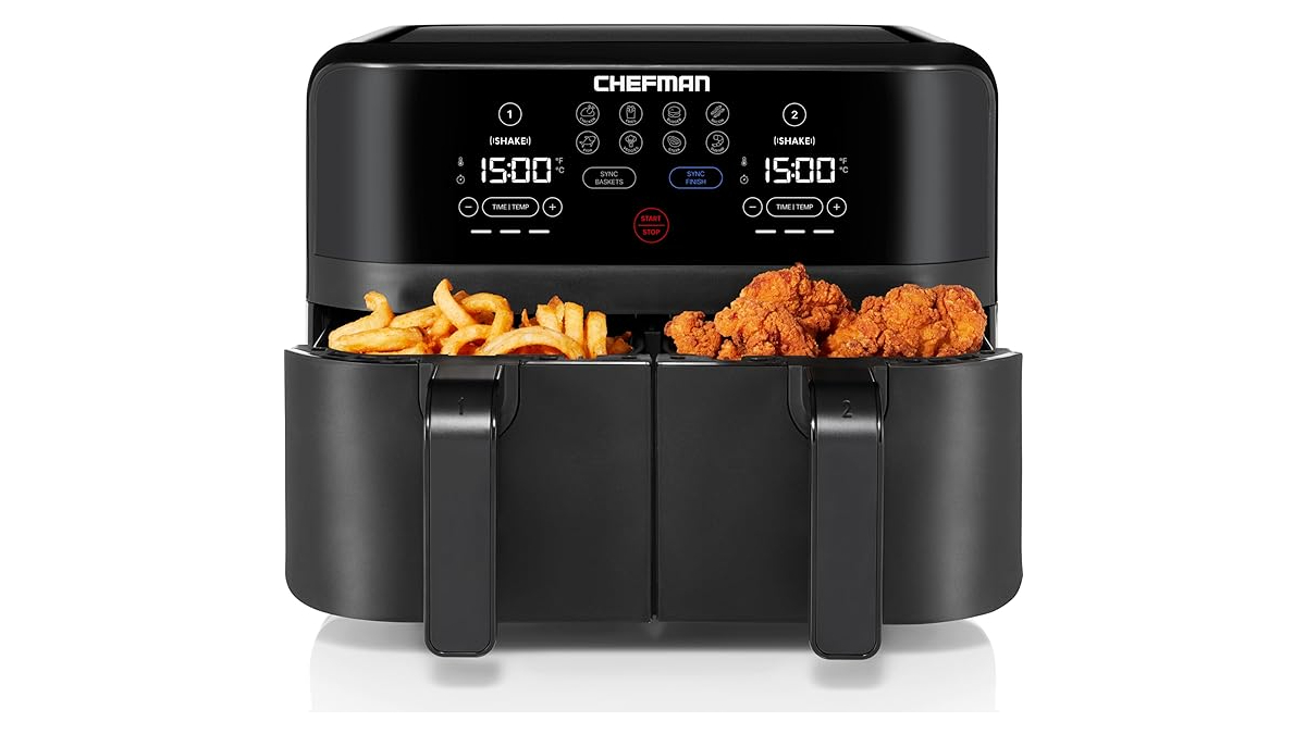 If you haven’t gotten an air fryer yet, what are you even doing with your life? Just kidding, but seriously, air fryers are one of the best kitchen appliances you can get. Between crisping up frozen foods and leftovers, you can cook pretty much anything else in an air fryer as well—while using way less energy than an oven. But even if you already have an air fryer, it’s worth it to upgrade to the Chefman TurboFry Touch Dual Air Fryer. Now discounted to $109.99, the Chefman Dual Air Fryer sports two independent baskets, so you can cook multiple foods at the same time.