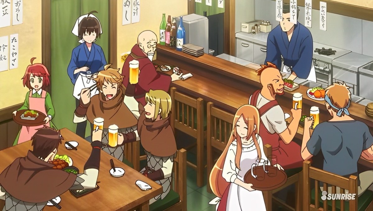 Isekai Izakaya centers around a Kyoto izakaya owned by Nobuyuki Yazawa called “Nobu.” While the back door leads to modern-day Japan, the front door is open to customers in the old capital city of Aitheria, a whole other world. People from various backgrounds come to Aitheria to learn about this new and foreign cuisine, with “Nobu” serving up traditional Japanese food.