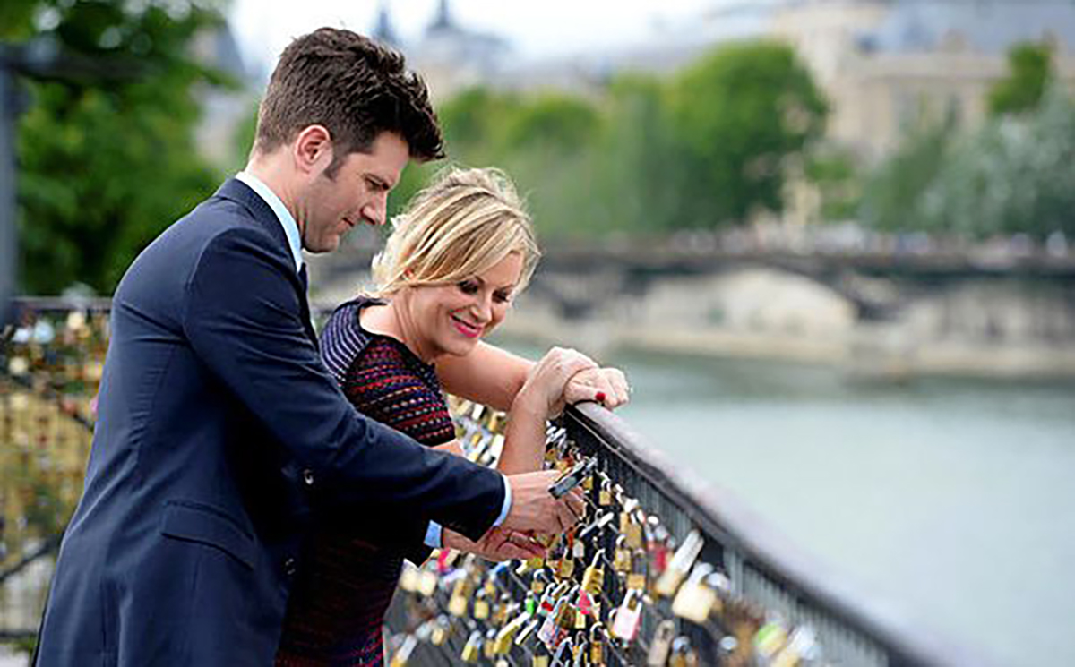 Leslie ends the episode in voice-over, saying “It times of stress or moments of transition, sometimes it can feel like the whole world is closing in on you. When that happens, you should close your eyes, take a deep breath, listen to the people who love you when they give you advice, and remember what really matters. And if you have the ability to go to Paris, by all means, go to Paris.”