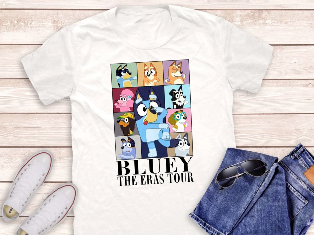 If you love Bluey and you love Taylor Swift, get yourself over to Etsy and snap this up. It’s a Bluey shirt designed to look like the poster for Swift’s Eras tour and Bluey herself takes front and center. Around her are her friends and family, and you probably know all their names already via your children.