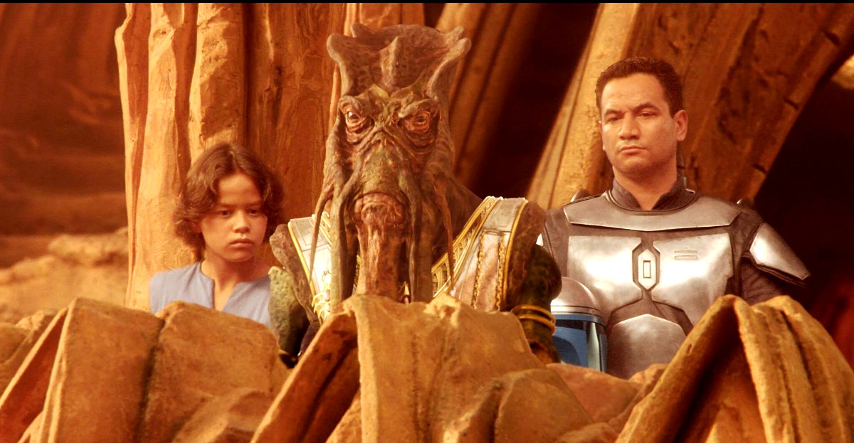 Jango Fett (Morrison) is a Mandalorian bounty hunter who was introduced in Star Wars: Episode II Attack of the Clones. The film marks his sole appearance in the Star Wars universe aside from flashbacks, holograms, and mentions. As a result, he didn’t have time to develop as a character very much. While he can be considered a Mandalorian by way of being a Foundling, he never really established his ideology or whom he sided with. He was always really just a bounty hunter who worked for whichever side agreed to pay, making him a rather two-dimensional character.