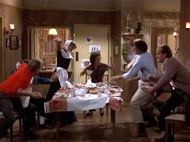 Friends produced several turkey day episodes over its decade-long run, but the most beloved of the bunch is probably Season 5’s “The One With All the Thanksgivings”. Like the aforementioned Cheers episode, this one sees the main crew gathering together for the holiday, in this instance at Monica’s place. There, they reminisce about their worst Thanksgiving’s ever.