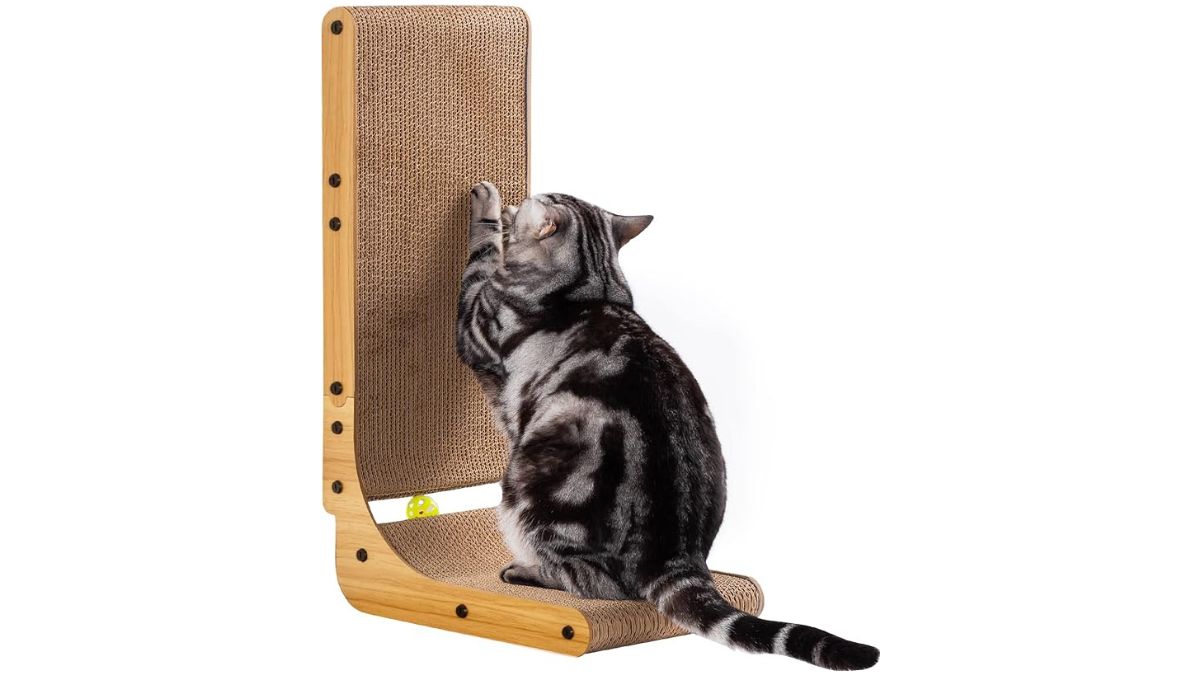 This isn’t just a cat scratcher, it’s a multi-functional masterpiece that looks as good as it performs. The unique L-shaped design provides dual scratching surfaces, catering to cats who love variety and giving them multiple angles to stretch and flex their claws. Its sturdy structure also makes it a great perch for lounging, so your cat can transition seamlessly from scratch mode to nap mode without skipping a beat.