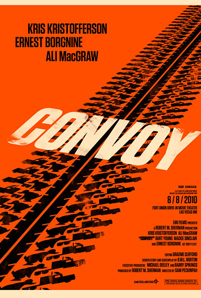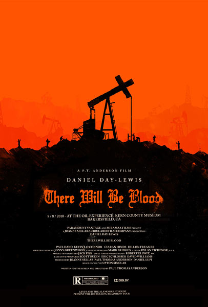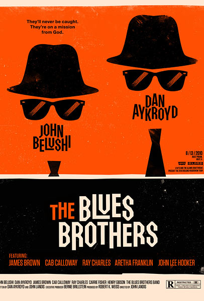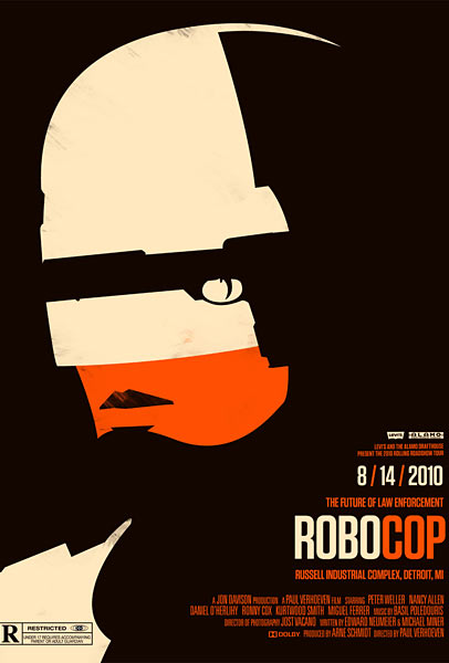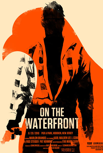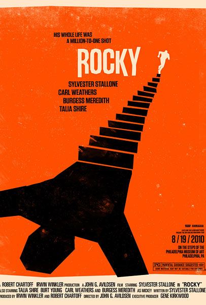 Below, see Moss’ reinterpretations of Dirty Harry, The Godfather Part II, Rocky, Convoy, RoboCop, On the Waterfront, Jackie Brown, The Blues Brothers, and There Will Be Blood. There are some clever references to the movies’ happenings in a few, like the stairs in Rocky and the Genco Olive Oil Company in Godfather Part II. But you don’t have to have seen the movies to appreciate these posters.
