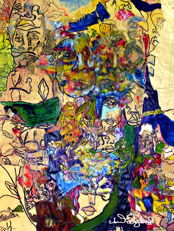 The AfroSurrealist work “World Invisible, Garden of Eden” is a mixed media (charcoal, ink, acrylic and oil on acid free paper), and measures 18” x 24.” Courtesy of Verneda Lights. All rights are reserved.